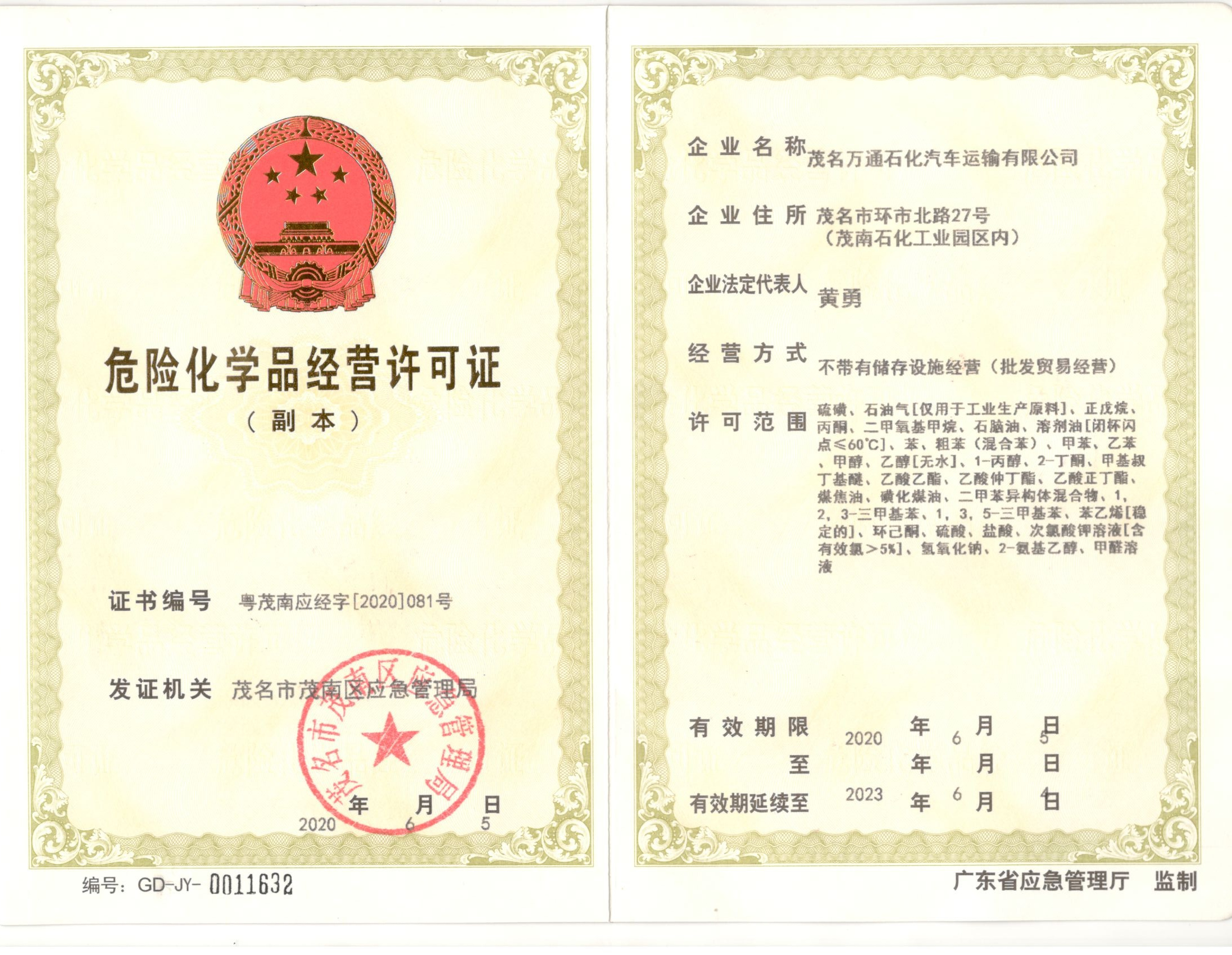 危險(xiǎn)化學(xué)品經(jīng)營(yíng)許可證